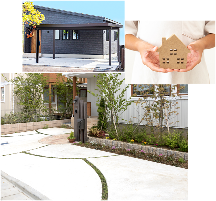 玄関アプローチ・門柱・土間コンクリートなど、家の印象を左右する外まわりを美しく整えます。